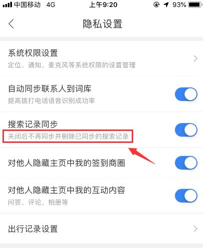 这样,关闭后将不再同步并删除已同步的搜索纪录。