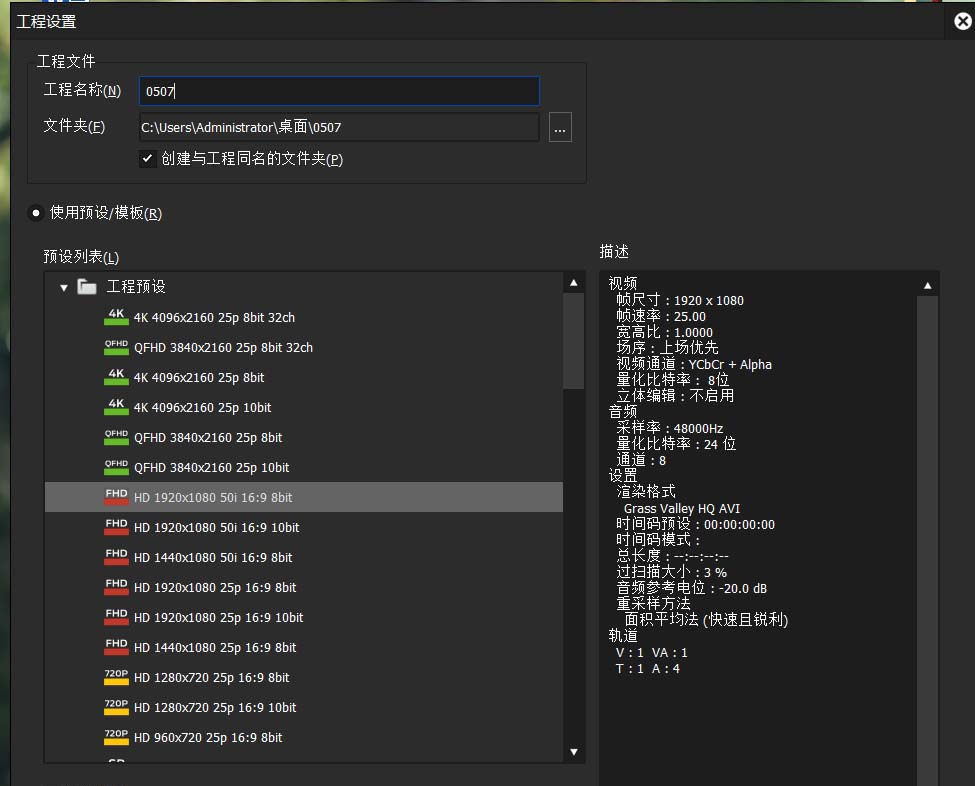 1、打开edius,新建一份工程文件;