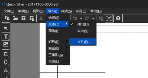 3、选择插入菜单里的文本选项下的文件选项,置入字幕文本或者用文字工具手动输入字幕,之后用选择工具调到合适的大小,字幕类型选择从下往上滚动的类型;