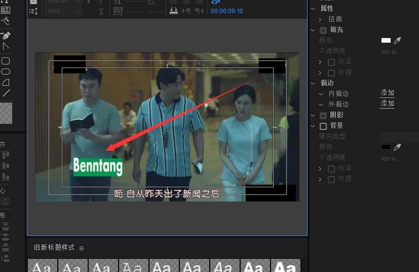 2、在所需要的位置,创建显示底色字幕的帧,调整其位置让其在需要的位置处显示,效果如下图所示: