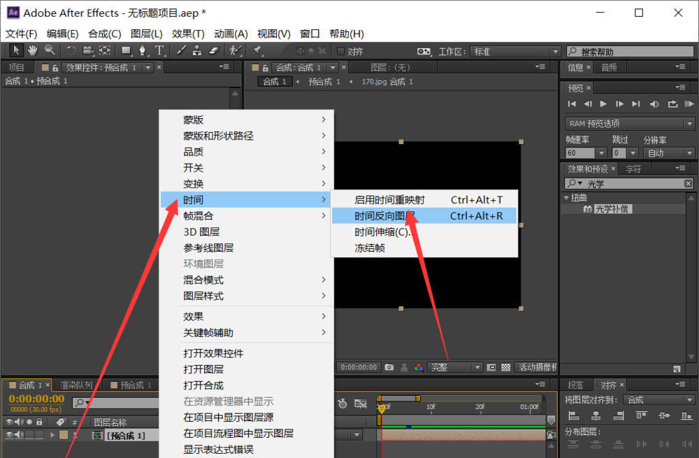 6、选中图层——鼠标右击——时间——反向时间