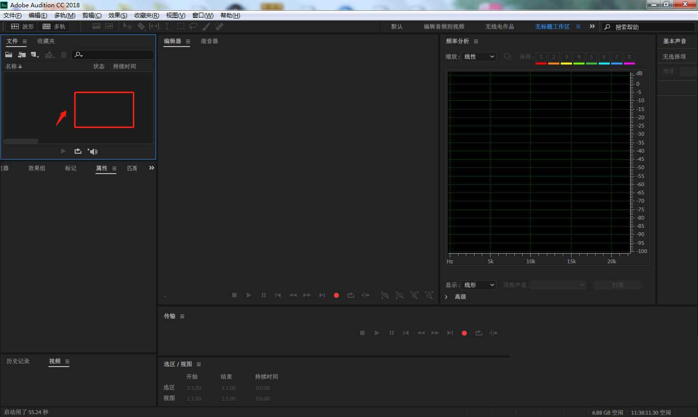 1、首先在电脑中打开AU软件,点击左上角区域,将需要的素材导入进来。