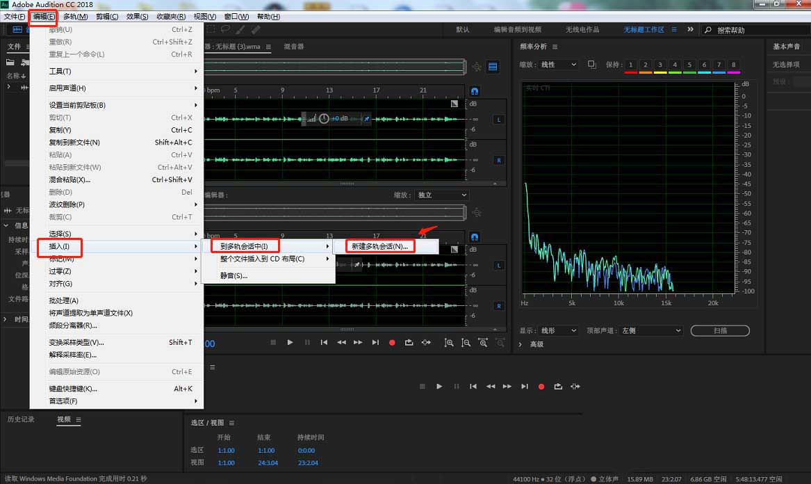 AU音频怎么插入多轨会话? Audition导入多轨音频的技巧