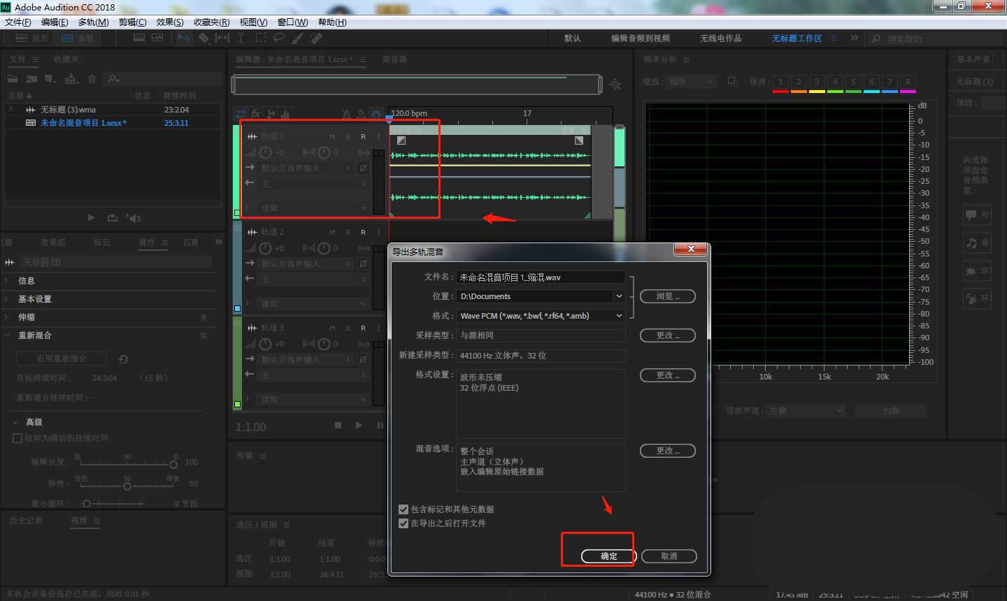 6、处理完成后即可发现音频已导入多轨会话当中,然后将其导出为想要的格式即可。
