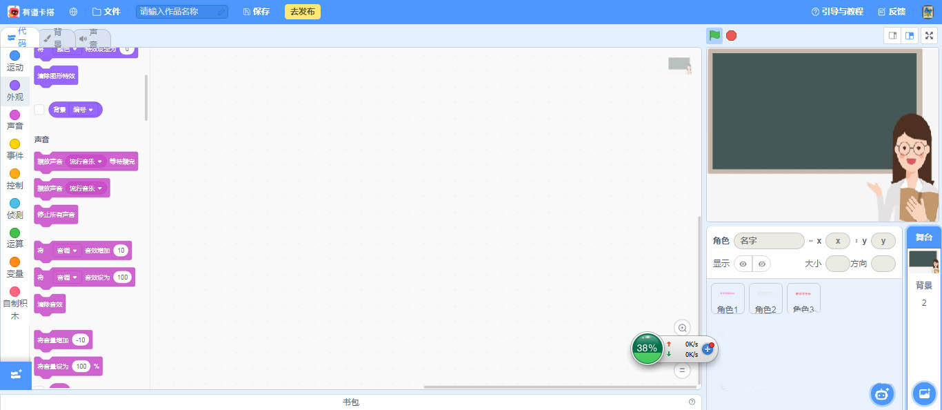 1、打开scratch3.0,我们添加一张和教师节主题相关的背景图片。