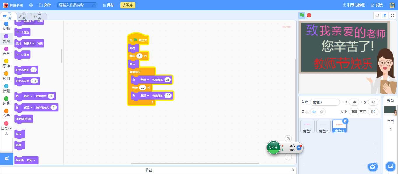 以上就是scratch3.0制作教师节主题动画的技巧,希望大家喜欢,请继续关注脚本之家。