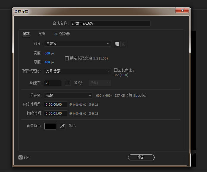 1、打开AE软件,命名动态拼贴动效,调整相应的参数。