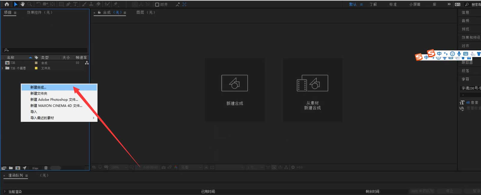 3、项目处——右键——创建新建合成-(命名合成1)。合成时间设置5秒(自定义哈)