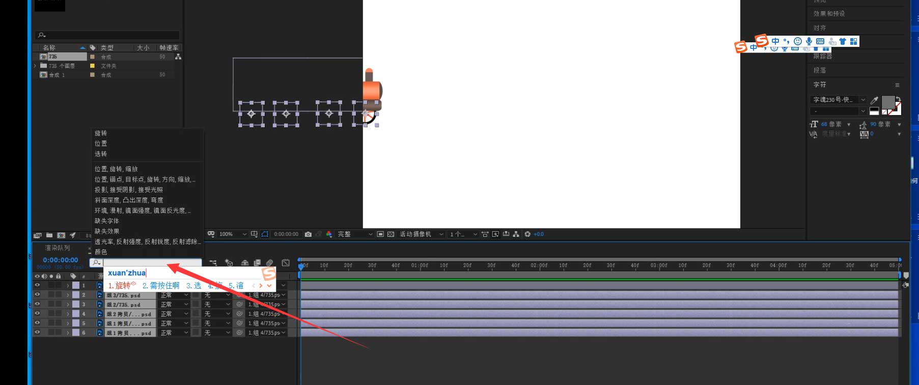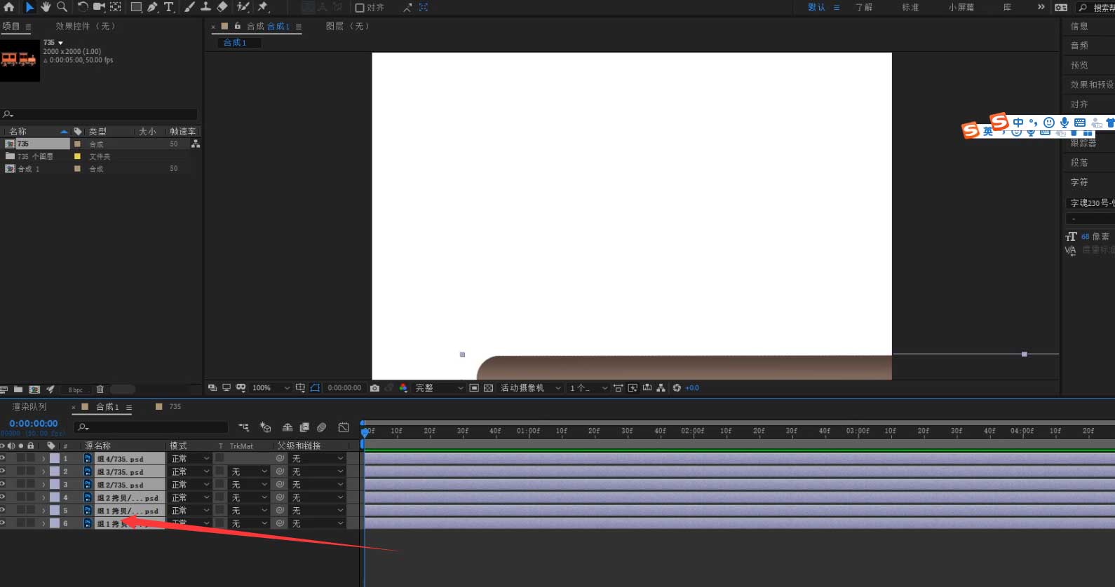 2)选中所有图层ctrl+C复制.回到(合成1)ctrl+V黏贴。