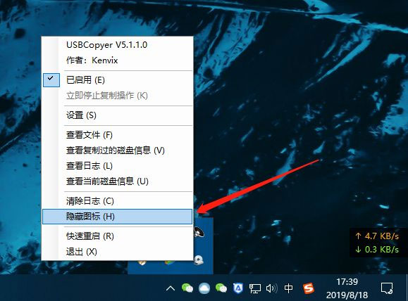 设置开机自动启动,并可以选择已隐藏模式启动。这个隐藏图标,也可以通过托盘图标右键选择隐藏,隐藏之后,想关闭完全退出软件,只能通过任务管理器后台进行关闭;