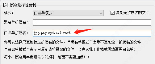 选择自己想复制的文件类型。可以选择全复制、黑名单模式、白名单模式;