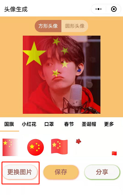 2、进入后可以看到国旗效果,选择一个自己喜欢的样式,点击更换图片。