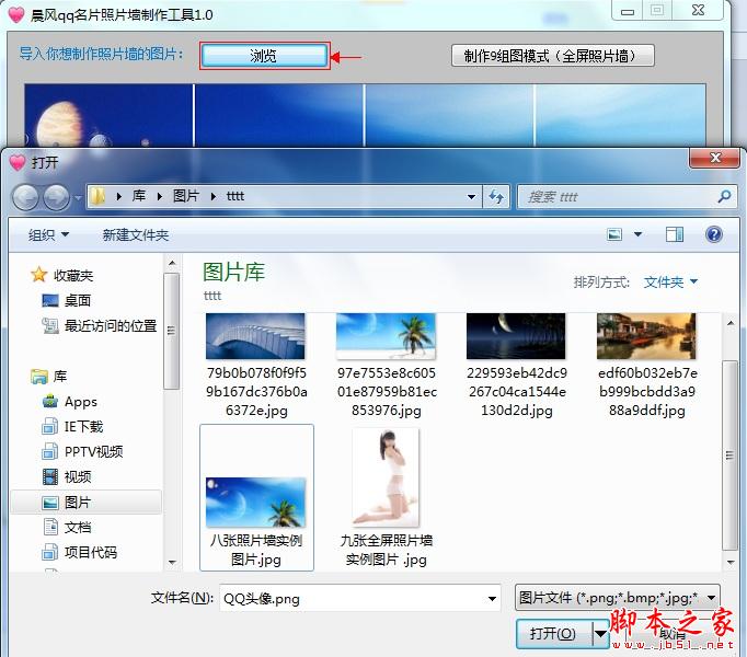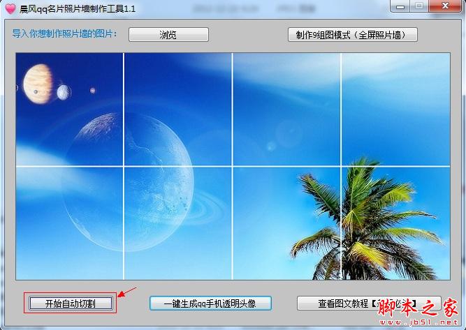 第三步:浏览选中了你喜欢的图片后,点“开始自动切割”按钮,软件会自动把8个图片分割好,然后打开你的手机qq,把这些图片传到你的手机相册上。