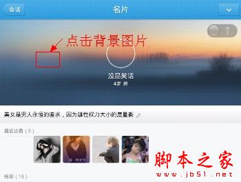 第二步:在你qq名片上半部分,也就是qq自带的背景图片那里点一下。【如果你只想制作qq相册8组图的模式,可跳过下面的操作,直接跳到第六步。】