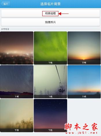 第三步:qq会弹出一个界面问你从哪里选择名片背景。点击“相册选取”。