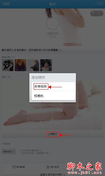 第六步:先点qq相册那里的“上传照片”,然后在弹出的窗口选择“本地相册”。