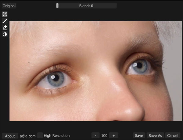 Retouch4me Eye Vessels是一款非常强大的自动修图软件,该软件主要针对的是眼睛内部的白红血丝,只需要放入图片,软件将使用神经引擎自动将眼睛里的白红血丝清理的干干净净,而且不会损失任何图片细节。所有的操作全部都是由AI完成,无需繁琐的操作。简化了你的工作流程。恢复到原来该有的状态,使照片中的任务保持一个完美的状态。这次小编给大家带来的是Retouch4me Eye Vessels插件版及单机版,可以将软件放入Photoshop或者单独使用。都能够非常高效的提高您的使用效率。有需要的小伙伴快来下载体验吧。