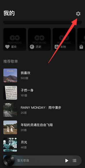 1、首先打开moo音乐我的页面, 在右上角点开设置