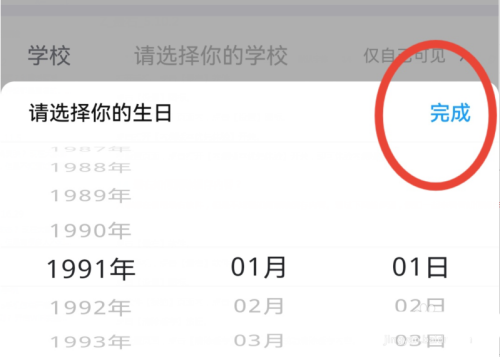 点击选择生日年份,然后点击【完成】按钮即可。