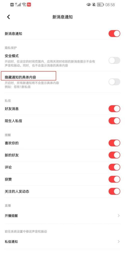 翻咔隐藏通知具体内容的步骤