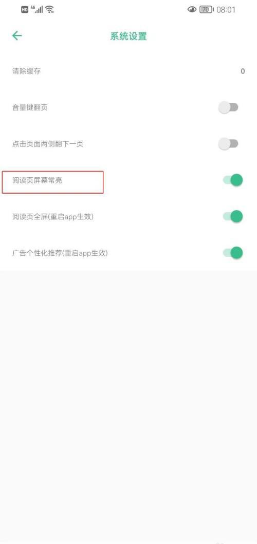 最后点击打开【阅读页屏幕常亮】即可完成操作