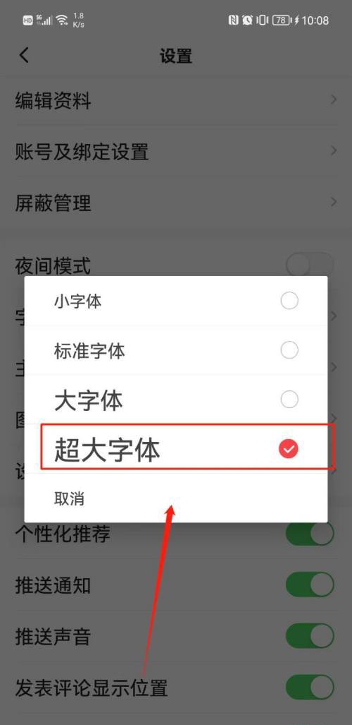 第三步:点击【字体设置】,在弹出的页面点击【超大字体】即可,详见下图所示.
