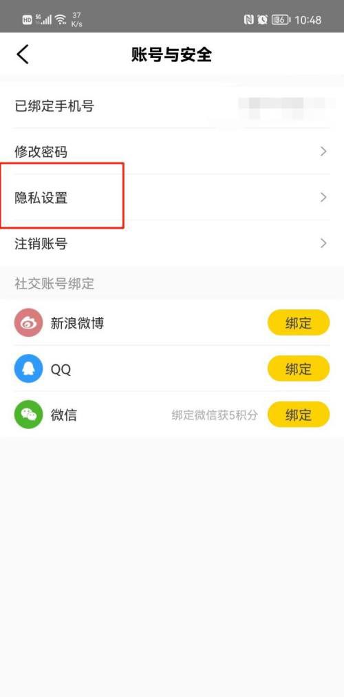 第四步:点击【隐私设置】,详见下图所示;