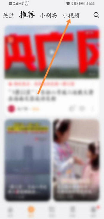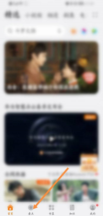第一步:进入手机的华为视频,点击下面的看点选项。