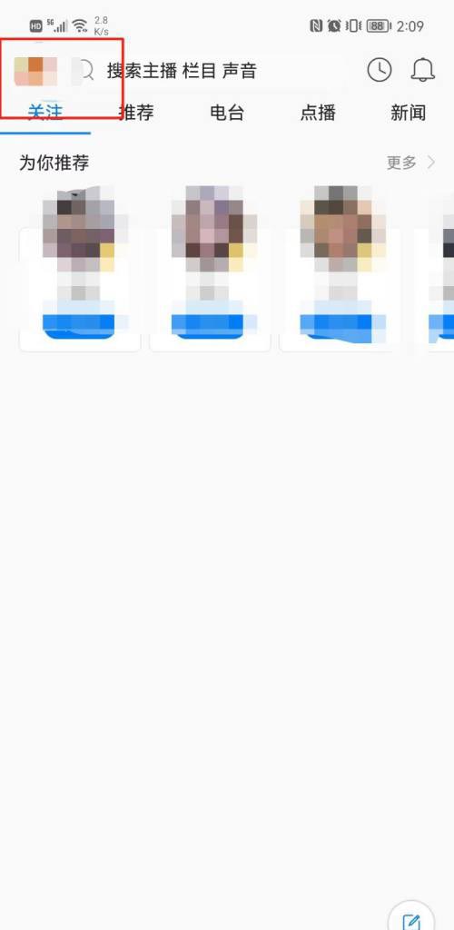 第一步:进入【叮咚FM】APP首页,点击左上角头像,详见下图所示;