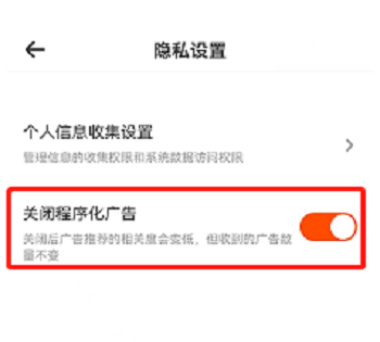 第五步:将【关闭程序化广告】打开即可完成(如图所示)。