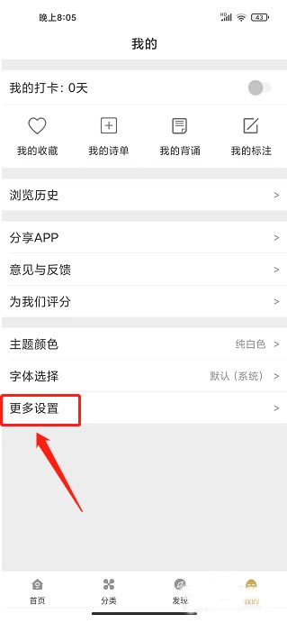进入我的界面,点击【更多设置】。