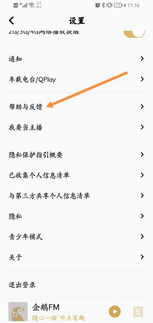 企鹅FM进行问题反馈的方法