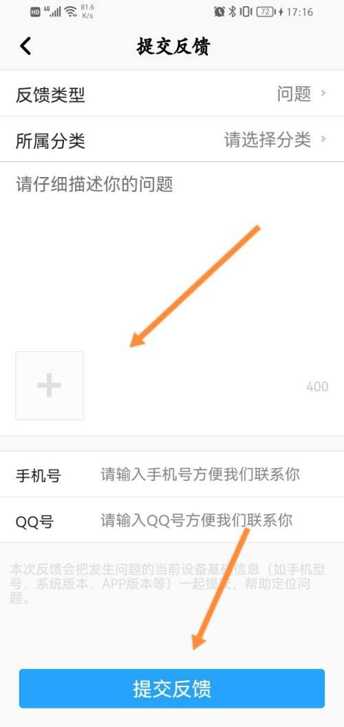 最后输入反馈的内容,点击提交即可。