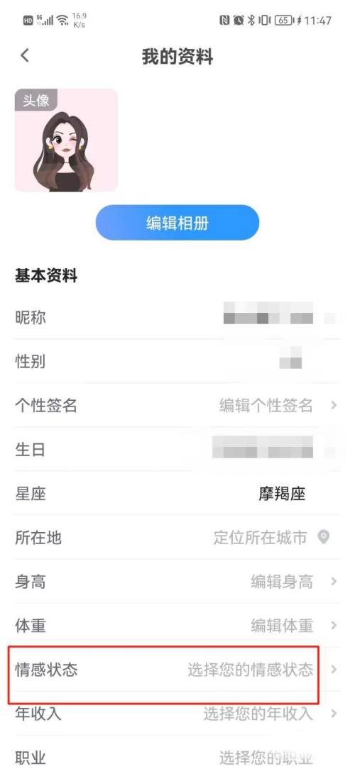 第三步:点击【情感状态】,详见下图所示;