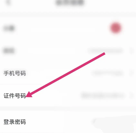 2、接着我们在进入的设置界面上,选择下面的证件号码选项,点击进入