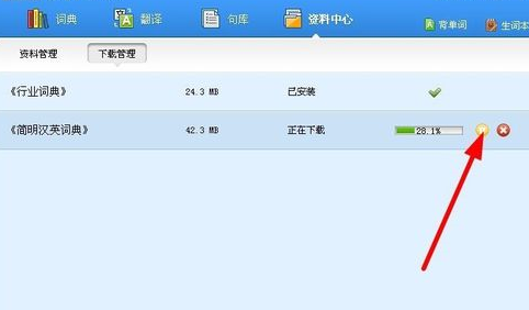 其实字典文件都是很大的,若想空闲的时候下载的话,点一下图上的位置就暂停了!