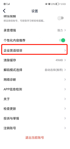 点击【企业英语培训】进入