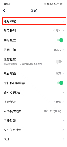 点击【账号绑定】进入