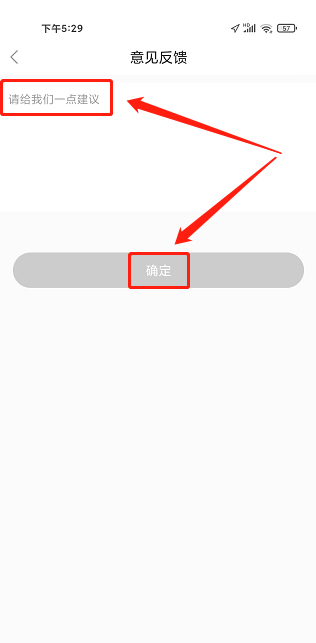 进入意见反馈界面,输入反馈建议内容,点击【确定】。