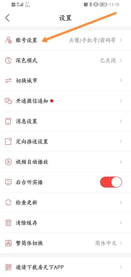 点击上面的账号设置选项。