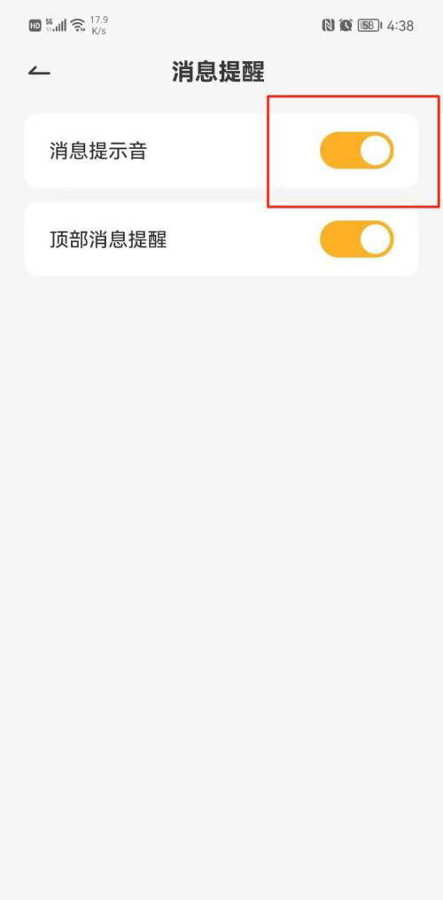 第四步:点击盲联【消息提示音】后的黄色按钮,待显色灰色即可关闭,详见下图所示。