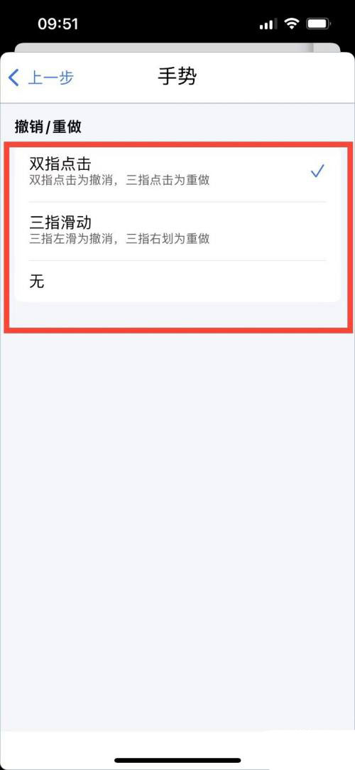 3、选择适合的手势来设置撤销/重做的手势即可。