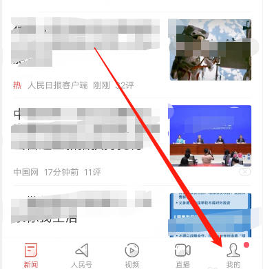 1、打开人民日报APP,点击首页右下角的我的。