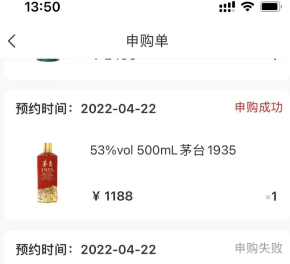 这个是茅台官方的APP申购支付成功了,是在你选择的城市去自提的,所以品质方面还是有保障的,官方的线上抢购线下专卖店提货,可以放心大胆的去抢了,i茅台APP是摇号方式申购的,所以大家不用担心手速,只要在规定的时间内申请申购,然后等开奖结果就好了。