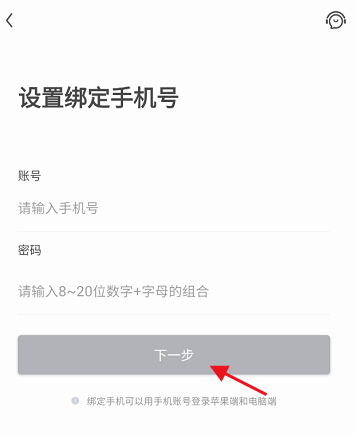 第六步:进入输入个人手机号码进行绑定,点击下一步设置完成。