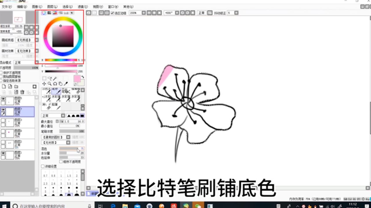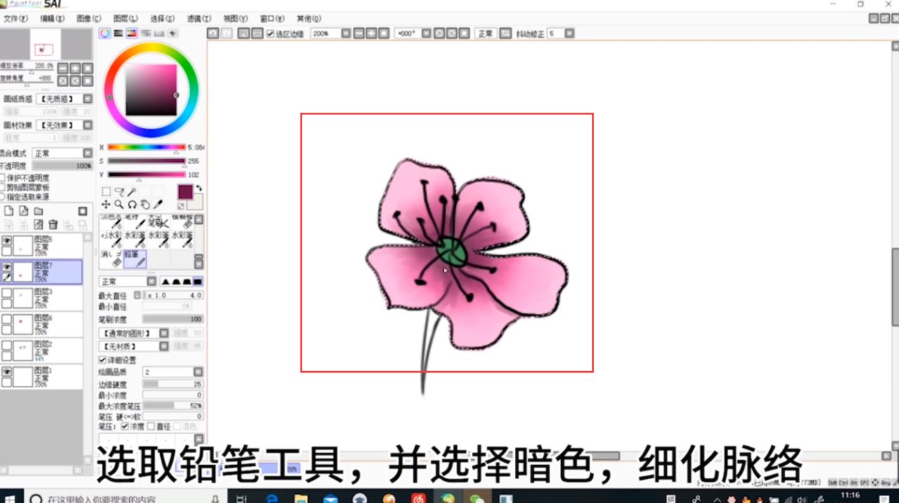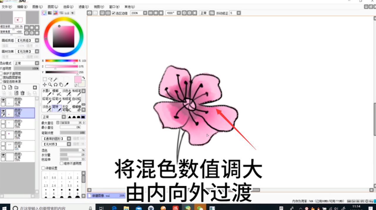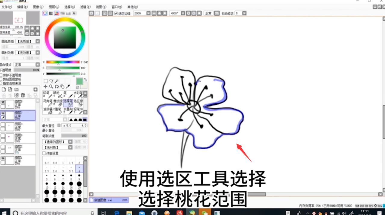 SAI怎么手绘桃花? sai绘制桃花矢量素材图的技巧