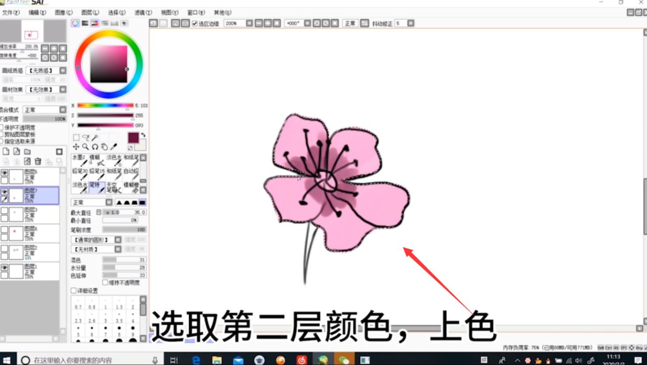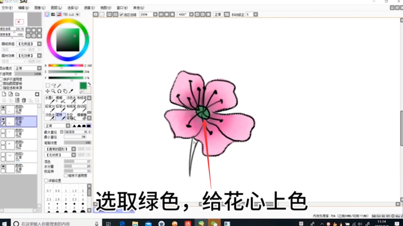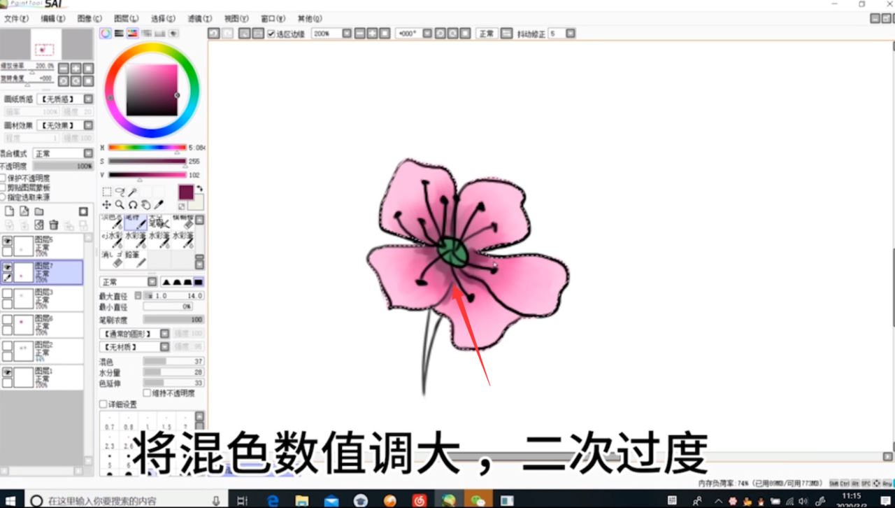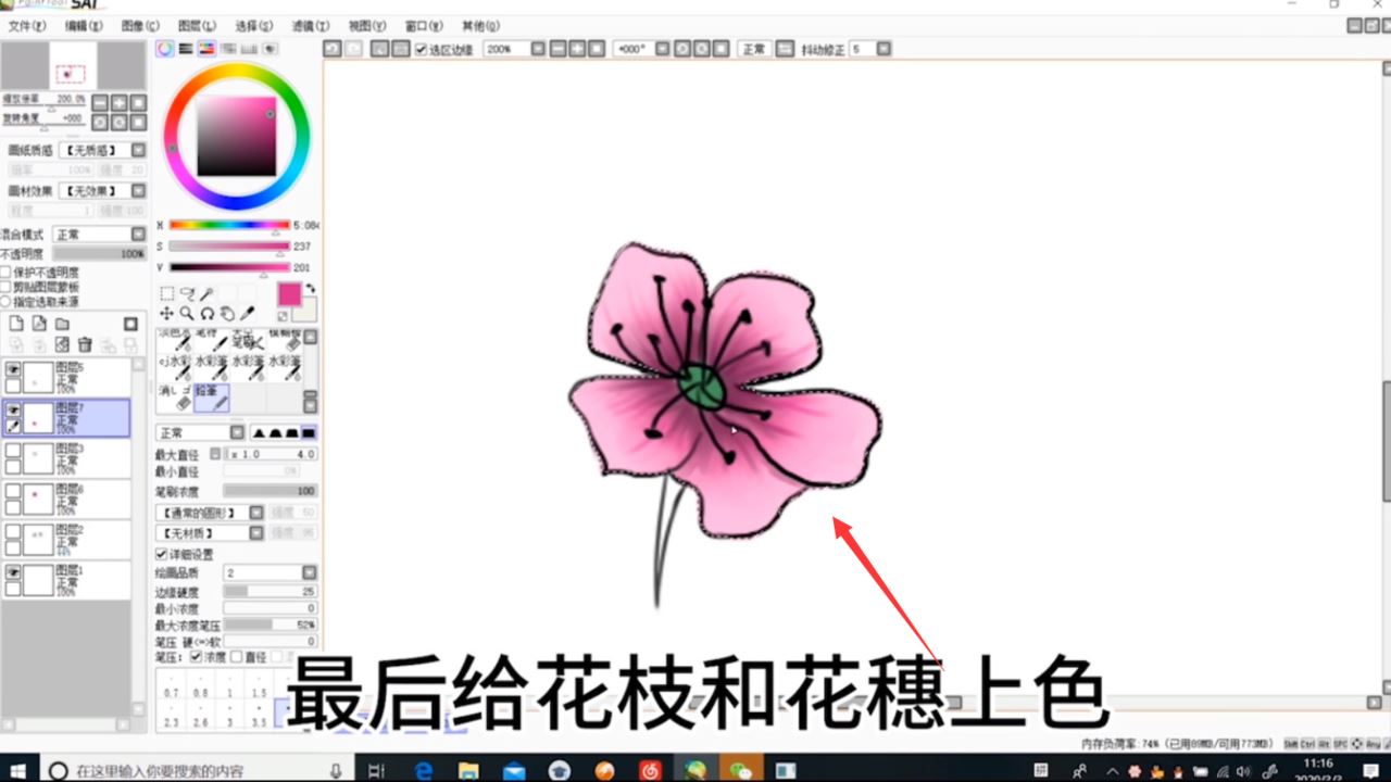 SAI怎么手绘桃花? sai绘制桃花矢量素材图的技巧