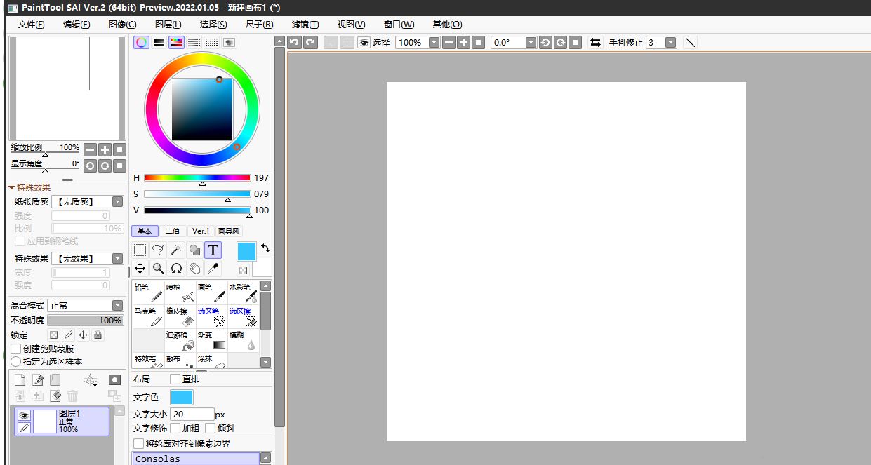 1.用户打开sai软件并新建空白画布,进入到绘制页面上来设置