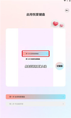 1、下载安装悦爱输入法app,开启悦爱输入法权限。