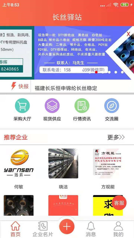 作为化纤行业专属平台,它首先为用户提供丰富且实时的行业资讯,涵盖市场走势、新产品推出、技术创新等动态,商家可通过这些信息精准把握市场需求与竞争态势,更好地制定采购策略;同时同步更新实时报价,让用户清晰了解产品价格变动趋势,为交易决策提供数据支撑。在交易协作方面,平台设有完整的采购大厅,支持用户自主查询采购信息,一站式解决采购难题,节省时间成本;还推送大量企业名片,用户可按身份、地区筛选,轻松获取合作企业信息,高效对接供求资源。